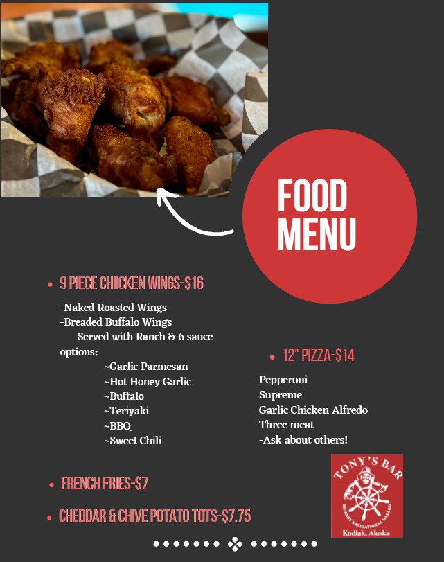 Tony’s Bar has been an institution for Kodiak, AK since 1936.Tony’s Bar serves Kodiak, AK and it’s surrounding areas.